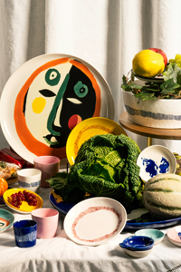 C'est en association avec la marque Belge Serax que le chef anglo-israélien Yotam Ottolenghi a imaginé la collection Feast, dessinée par l'artiste Ivo Bisignano. Une ligne authentique, audacieuse, joyeuse et colorée, composée d'assiettes en grès émaillé et plats, coupelles, gobelets, bols, des opposés manifestes qui coexistent dans une harmonie dynamique.