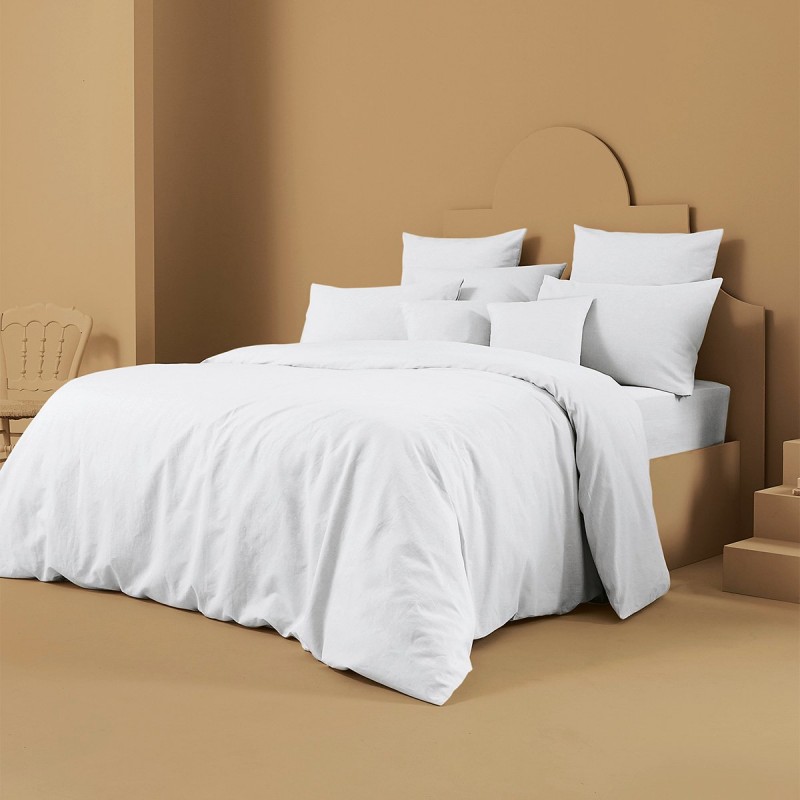 Le metis français, une collection unie en métis 50% coton/ 50% lin, grammage 160g/m², très qualitative, souple, douce et résistante. Housse de couette, drap housse, taies d'oreiller, au choix. Tissé, teint et ennobli en France, dans les Vosges. Signé Garnier-Thiébaut