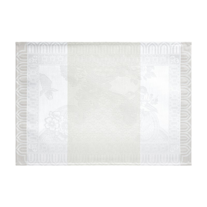 Partez à la découverte d'un jardin imaginaire, hommage contemporain aux délicates porcelaines chinoises. Entre géométrie asiatique revisitée et poésie d'un décor sculptural, ce modèle diffuse un souffle de douceur et de délicatesse. En coton enduit de haute qualité, traité anti-taches, anti-glisse. Vendus par 4. Fabriqué en France. Signé Le Jacquard Français.