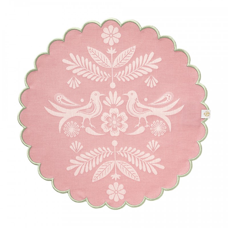 Inspirés par la magie des broderies de Tenango au Mexique, les motifs de ce modèle se réinventent à chaque regard. Sets de table ronds, soulignés d'un feston contrasté. En coton enduit de haute qualité, imperméable, traité antitaches, anti-glisse. Vendus par 4. Fabriqués en France. Le Jacquard Français.