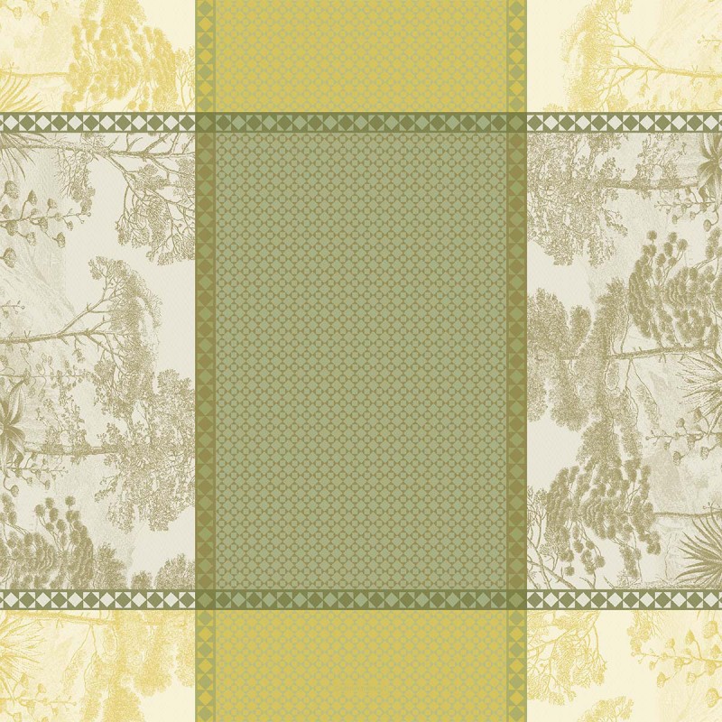 Cette petite nappe florale moderne aux motifs sophistiqués, travaillée dans un camaïeu de vert, est d'un pur ravissement. Pratique, elle bénéficie du traitement anti-tache durable invisible Green Sweet. Tissu jacquard 100% coton 220g/m², haut de gamme. Finition coins capuchons. Fabriqué en France. Marque Garnier-Thiébaut