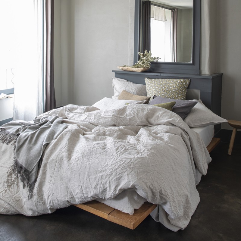 Un coloris naturel et une matière noble avec cette luxueuse parure de lit en 100% lin uni français longues fibres, rincé à l’eau pure, sans produit chimique ni adoucissant pour un toucher plus doux, au look casual. Son effet froissé donne une finition à la fois simple et sophistiquée. Linge de maison haut de gamme, Alexandre Turpault.
