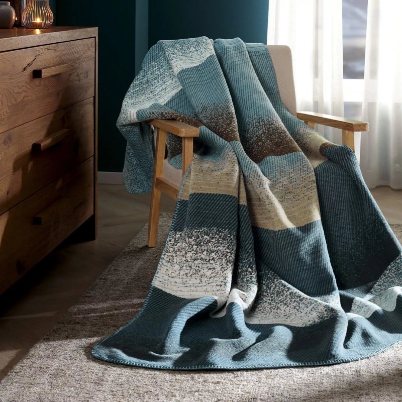 Plaid jacquard coton mélangé Sea Waves Bleu 150x200cm, Garnier-Thiébaut