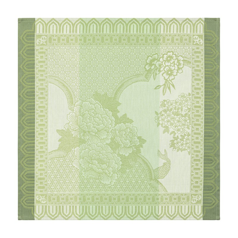 Partez à la découverte d'un jardin imaginaire, hommage contemporain aux délicates porcelaines chinoises. Serviettes de table assorties au linge de table de la collection Promenade Impériale Jade, 100% coton. Vendues par 4. Fabriqué en France. Signé Le Jacquard Français