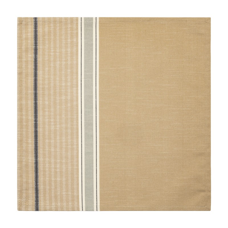 Sous le soleil du Sud, ces serviettes assorties au linge de table Dune Argan révèlent la beauté simple d'un savoir-faire transmis de génération en génération. Inspirées des tentes des bergers nomades, les rayures de la collection Dune célèbrent cet héritage ancestral. Les nuances de sable et de bleu profond restituent la lumière et le mouvement doux des dunes. Composée à 61 % de fils « Re-Fil » issus des chutes de production, la collection Dune allie élégance et démarche durables. Fabriqué en France. Vendu par 4. Le Jacquard Français